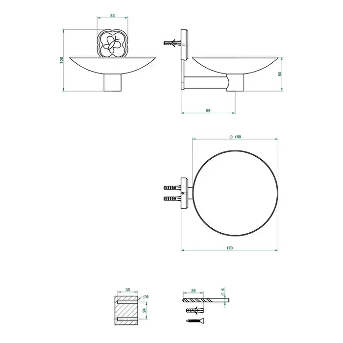 THG CAPUCINE VERT DECOR PLATINE Мыльница подвесная ø150 мм., декор зеленый, цвет: хром