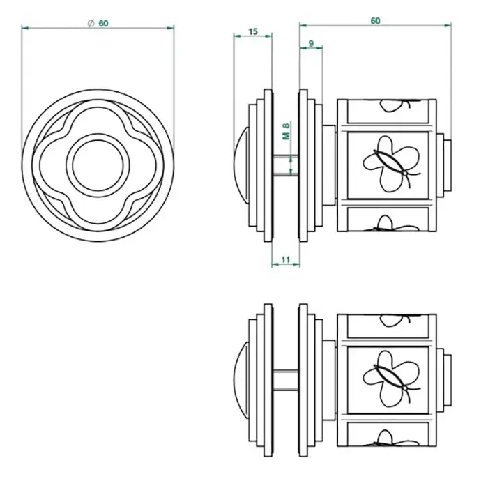 THG CAPUCINE VERT DECOR PLATINE Ручка дверная одинарная, декор платина/зеленый, цвет: хром