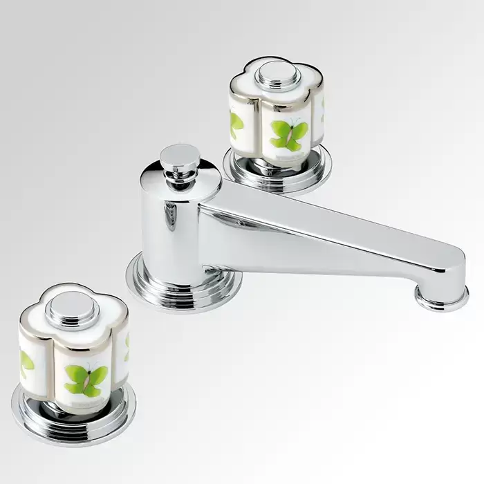 THG CAPUCINE VERT DECOR PLATINE Смеситель для раковины на 3 отверстия, с донным клапаном, декор платина/зеленый, цвет: хром