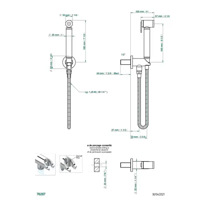 THG Collection O Гигиеничесий душ, с настенным держателем, с подводом воды и шлангом 125см., цвет: Soft matt gold
