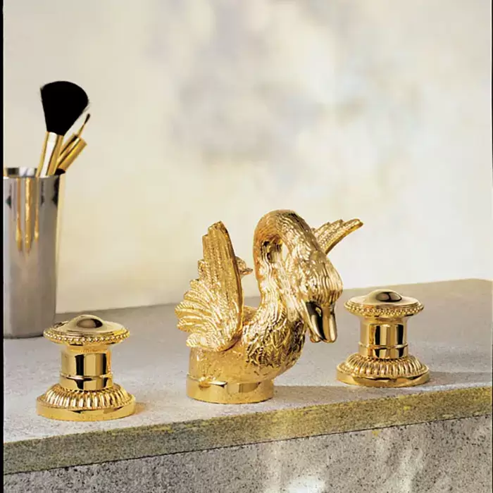 THG Cygne Смеситель для раковины на 3 отверстия, низкий излив, с донным клапаном, цвет: полированное золото