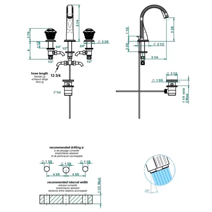 THG Dahlia Смеситель для раковины, 3 отв., цвет: золото