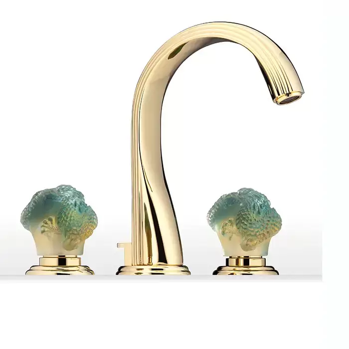 THG Dragon Jade Смеситель для раковины, 3 отв., цвет: золото/хрусталь