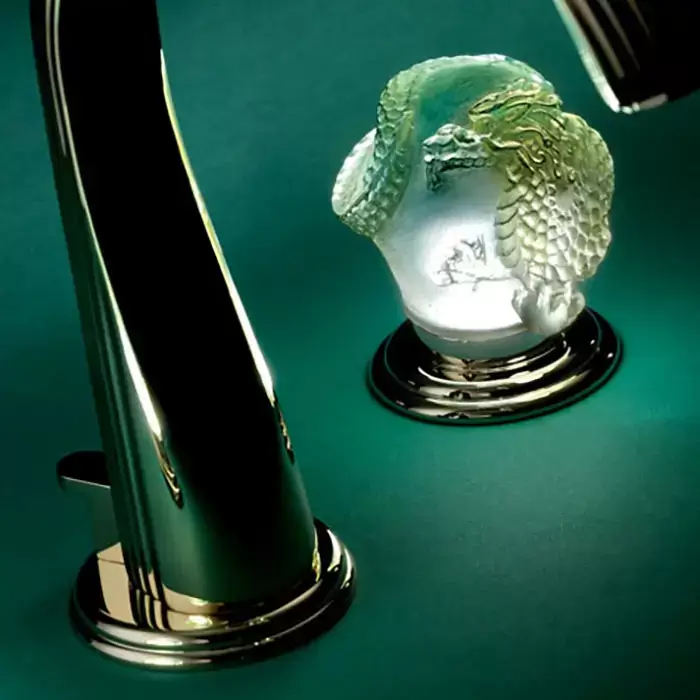 THG Dragon Jade Смеситель для раковины, 3 отв., с подсветкой, цвет: золото/хрусталь