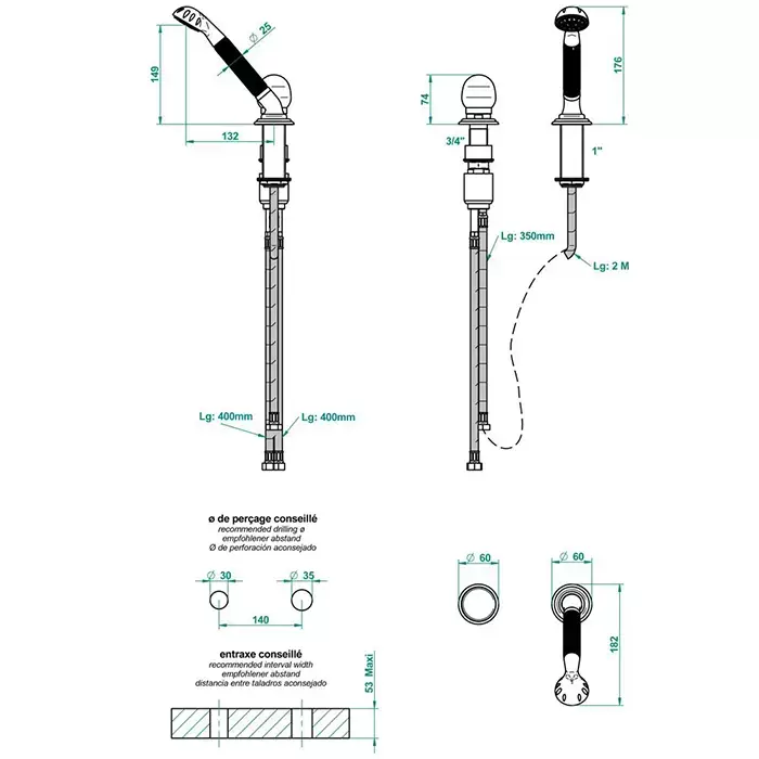THG Dragon Moon Ручной душ на борт ванны, 2 отв., цвет: хром/хрусталь