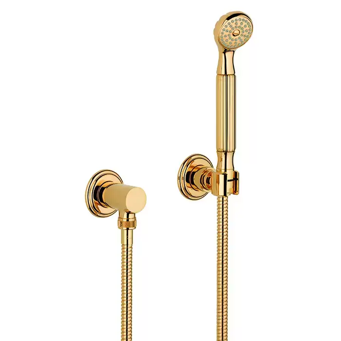 THG Dragon Sun Душевой комплект с ручным душем, шлангом 1500 мм., подводом воды и держателем, цвет: полированное золото
