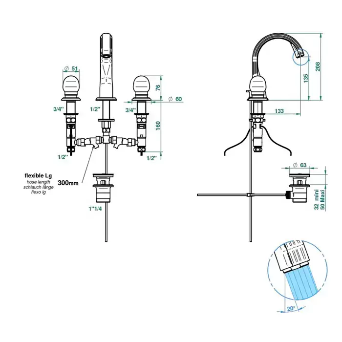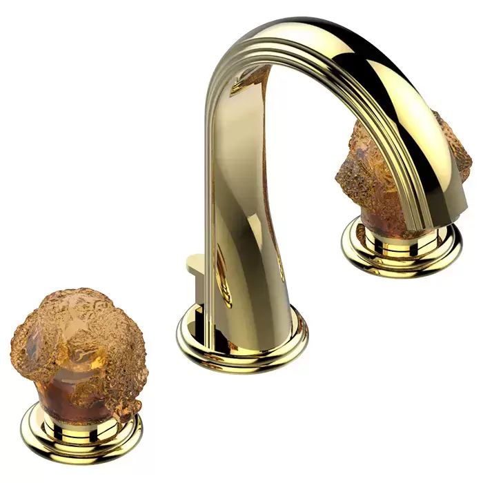 THG Dragon Sun Смеситель для раковины на 3 отверстия, с донным клапаном, ручки с подсветкой, цвет: полированное золото