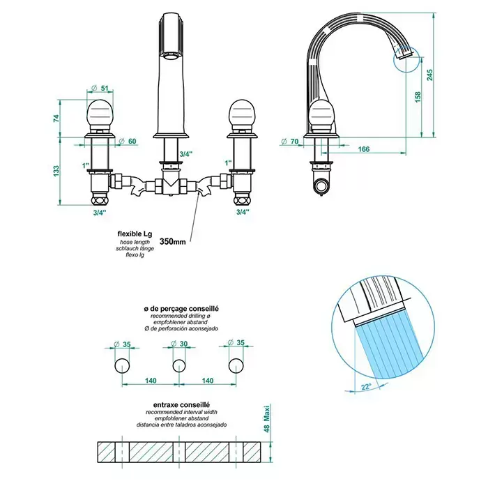 THG Dragon Sun Смеситель для ванны, 3 отв., цвет: золото/хрусталь