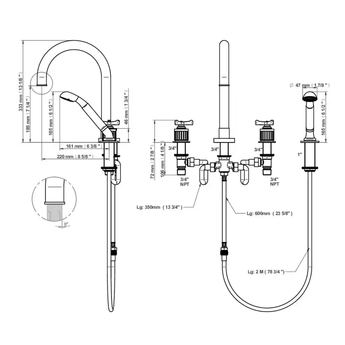 THG Hamptons Смеситель на борт ванны, 4 отв., с ручным душем, цвет: хром