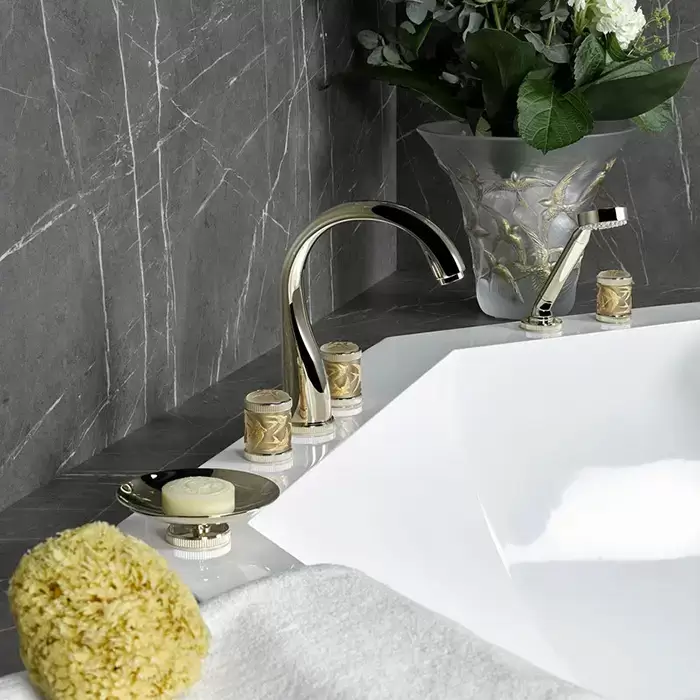 THG Hirondelles Gold Stamped Смеситель на борт ванны, 5 отв., с ручным душем, цвет: Soft gold