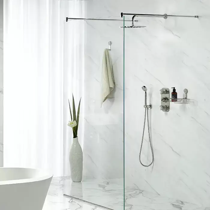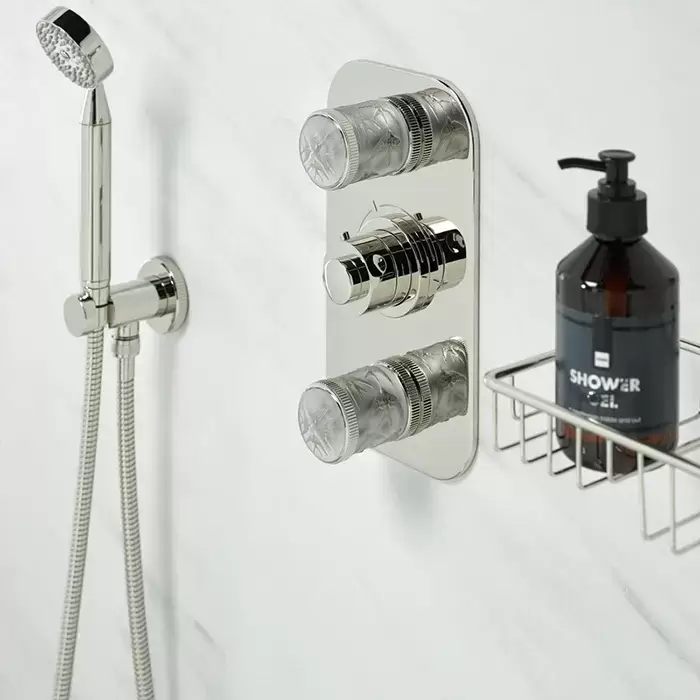 THG Hirondelles Platinum Stamped Душевой комплект: термостатический смеситель, ручной душ, верхний душ Ø30см, держатель с подводом воды и шланг 1500 мм, цвет: Polished nickel