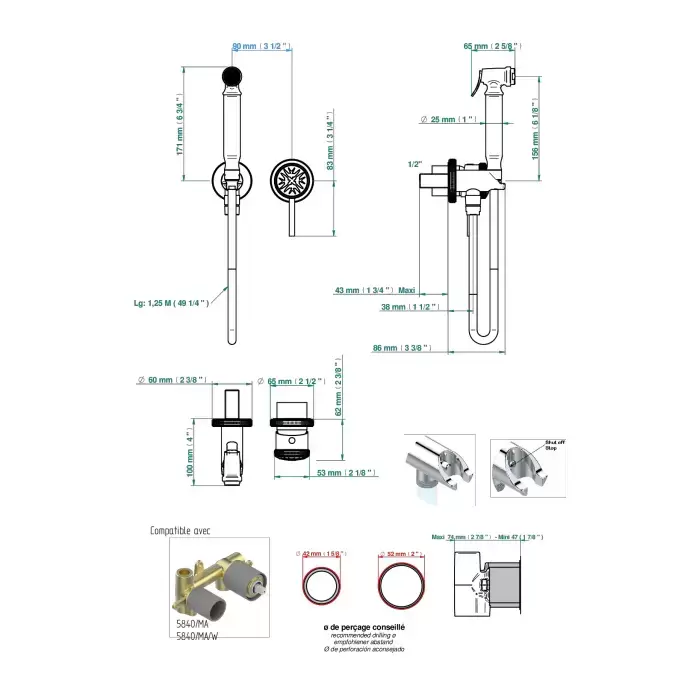 THG Hirondelles Platinum Stamped Гигиенический душ со встраиваемым смесителем, настенный, цвет: хром