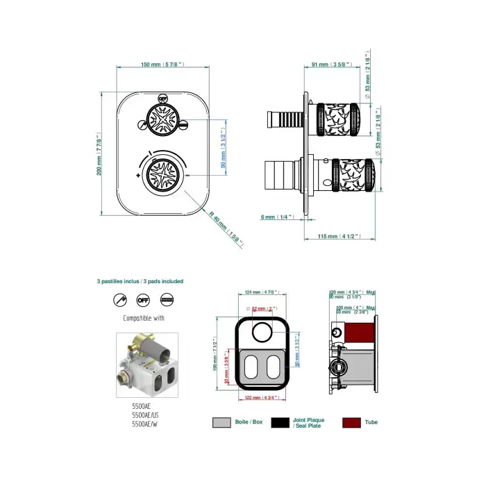 THG Hirondelles Platinum Stamped Смеситель для душа, встраиваемый, термостатический, цвет: Polished gold