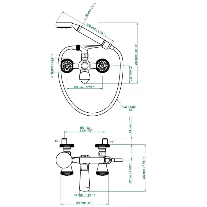 THG Hirondelles Platinum Stamped Смеситель для ванны, настенный, с ручным душем, цвет: Gold color PVD