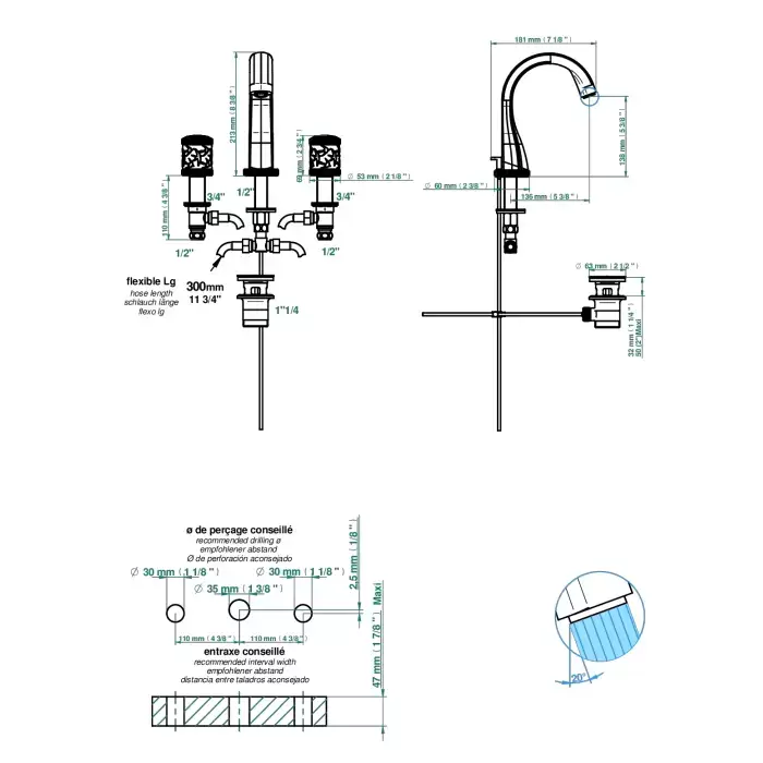 THG Hirondelles Смеситель для раковины, 3 отв., цвет: Umber color PVD