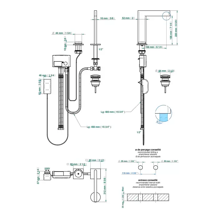 THG ICON-X METAL À MANETTES Смеситель для раковины, 2 отв., электронный, с донным клапаном, цвет: хром