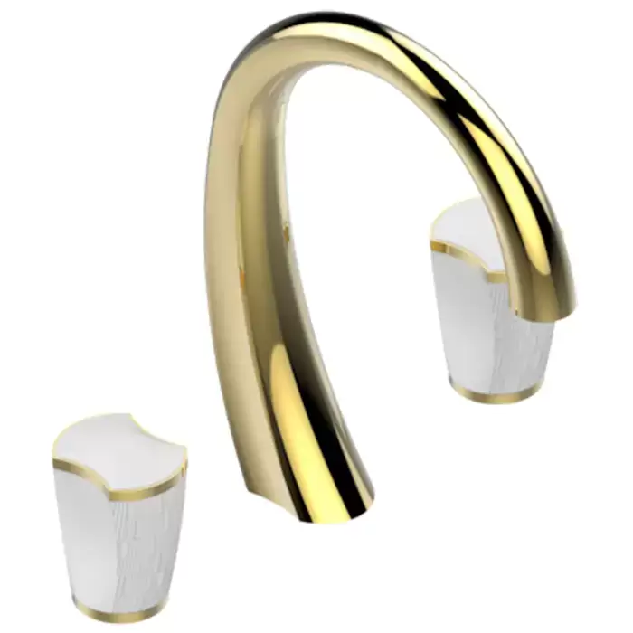 THG Infini Porcelaine Blanche Смеситель для раковины, на 3 отв., для увеличенных по толщине столешниц, с донным клапаном, цвет: Matt gold PVD
