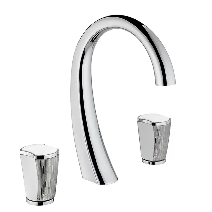 THG Infini white porcelain with platinum decor Смеситель для раковины на 3 отверстия, с донным клапаном, цвет: хром