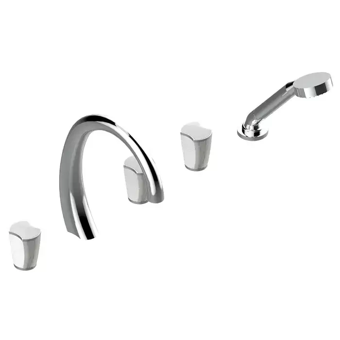 THG Infini white porcelain with platinum decor Смеситель на борт ванны на 5 отверстий, с прогрессивным смесителем для ручного душа, ручной душ, цвет: хром
