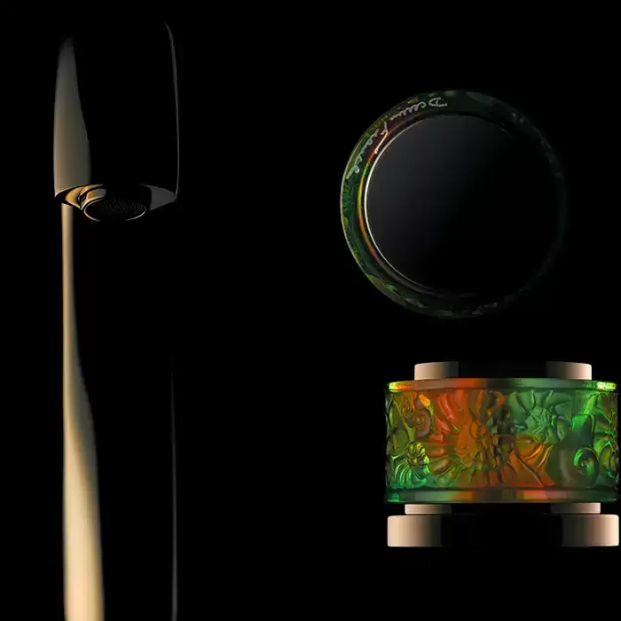 THG Island Смеситель на борт ванны на 2 отверстия, прогрессивный, с ручным душем, цвет: Soft gold