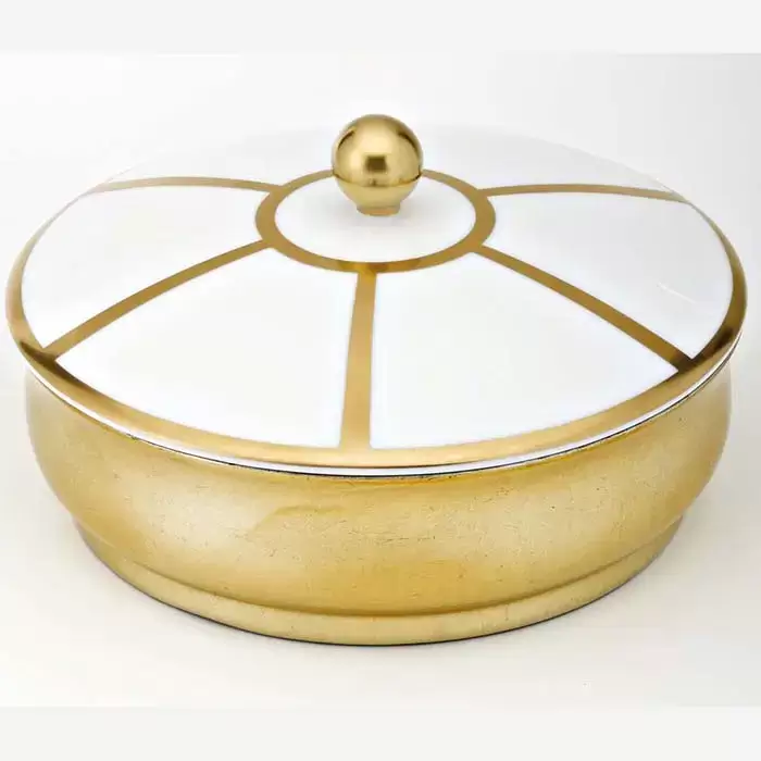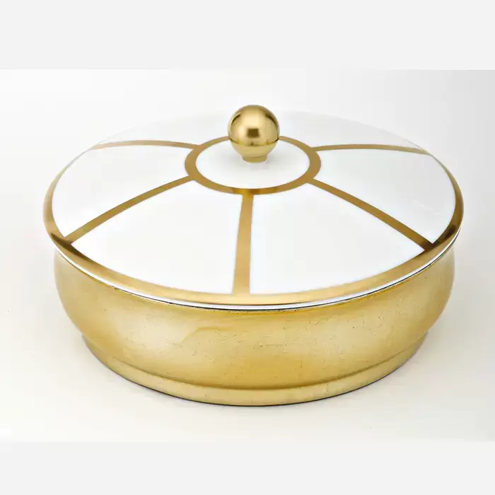 THG ITHAQUE DECOR OR Китайская лакированная коробка с белой керамической крышкой Ø180 мм., big size, декор золото, цвет: золото