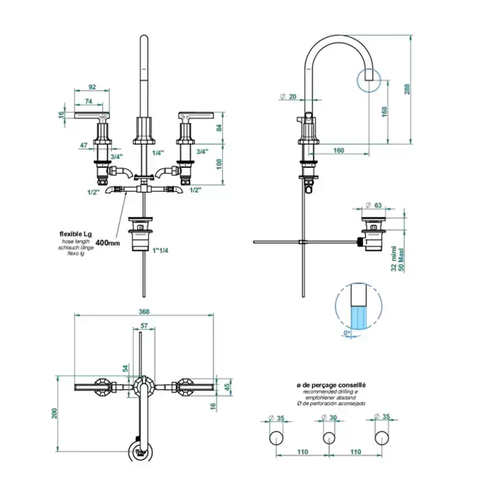 THG Les Ondes à manettes Смеситель для раковины, на 3 отв., цвет: Matt nickel