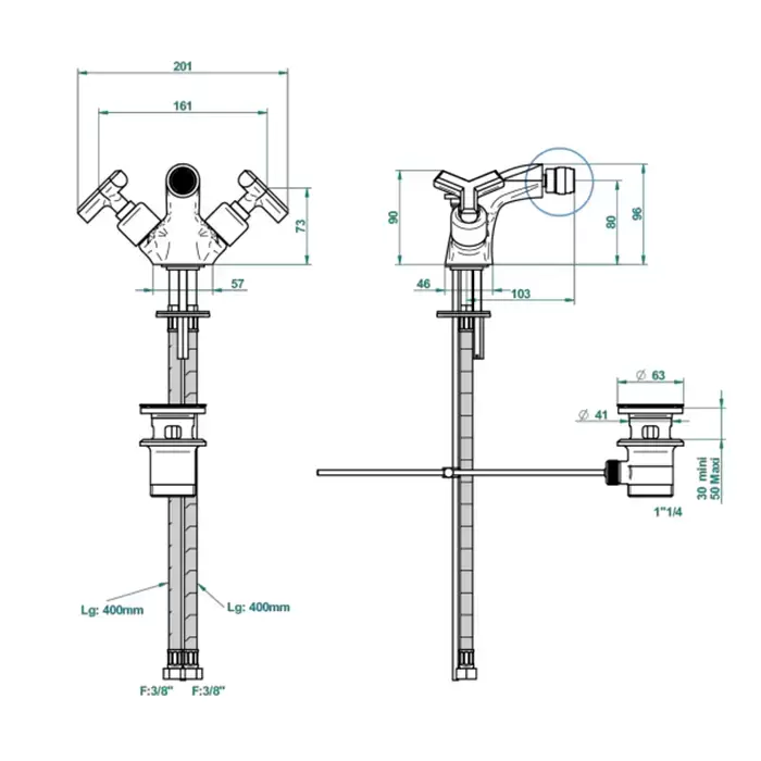 THG Les Ondes Смеситель для биде, на 1 отв., с донным клапаном, цвет: Matt nickel