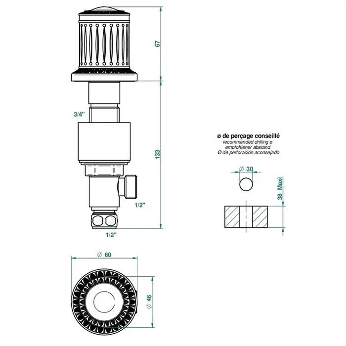 THG Malmaison crystal Вентиль смесителя для раковины, цвет: Soft matt gold