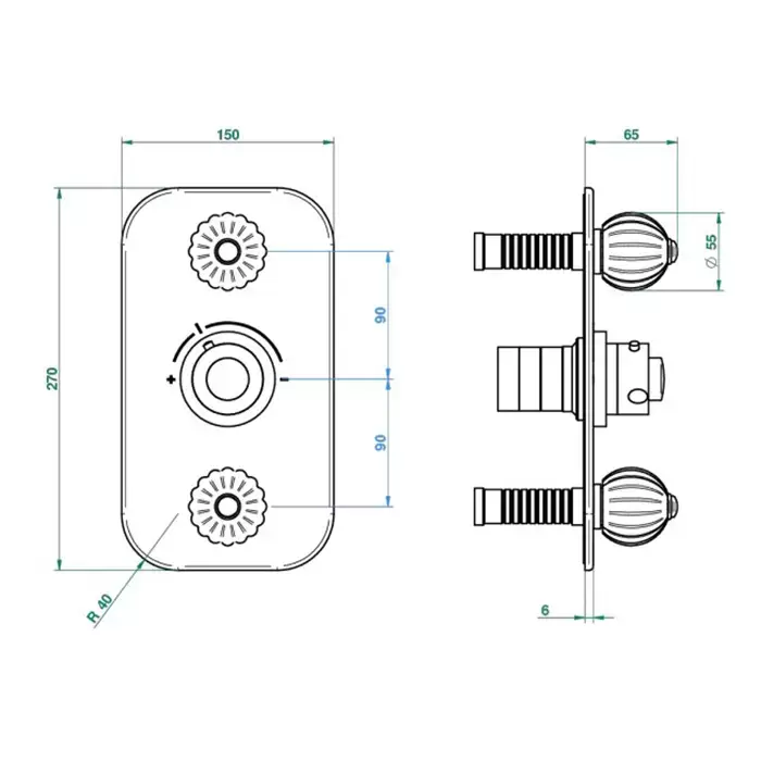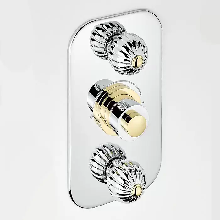 THG Mandarine metal Смеситель для душа встраиваемый, термостатический, с 2 запорными вентилями, внешняя часть, цвет: хром/золото