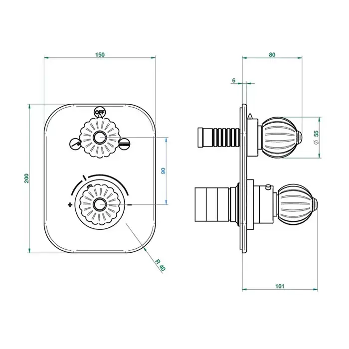 THG Mandarine metal Смеситель для душа встраиваемый, термостатический, с переключателем на 2 положения, внешняя часть, цвет: хром/золото