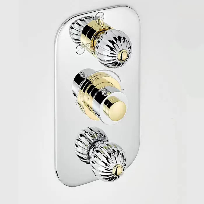 THG Mandarine metal Смеситель для душа встраиваемый, термостатический, с переключателем на 2 положения и запорн вентил, внешн часть, цвет: хром/золото