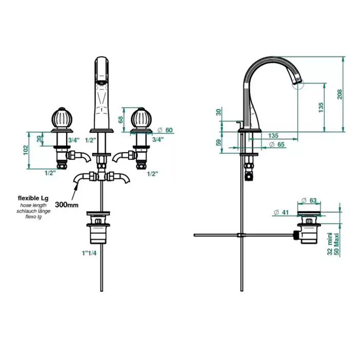 THG Mandarine metal Смеситель для раковины на 3 отверстия, с донным клапаном, цвет: хром/золото