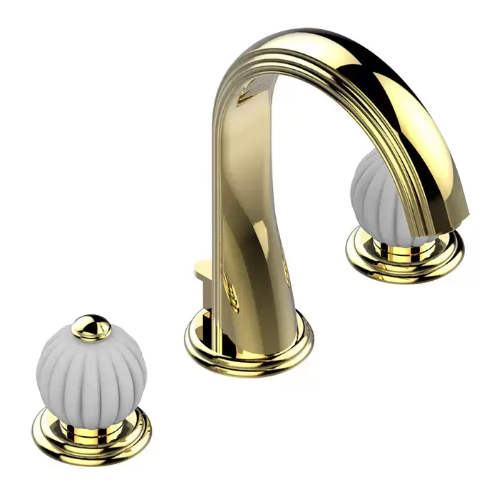 THG Mandarine satin crystal Смеситель для раковины на 3 отверстия, с донным клапаном, цвет: полированное золото