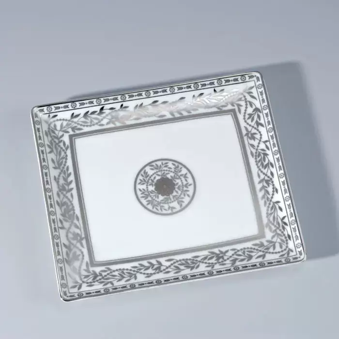 THG MARQUISE BLANC DECOR PLATINE Поднос керамический 171х154 мм., настольный, middle size, декор платина, цвет: белый