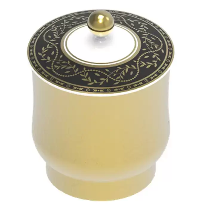 THG MARQUISE NOIR DECOR OR Китайская лакированная коробка с белой керамической крышкой Ø94 мм., small size, декор черный/золото, цвет: золото