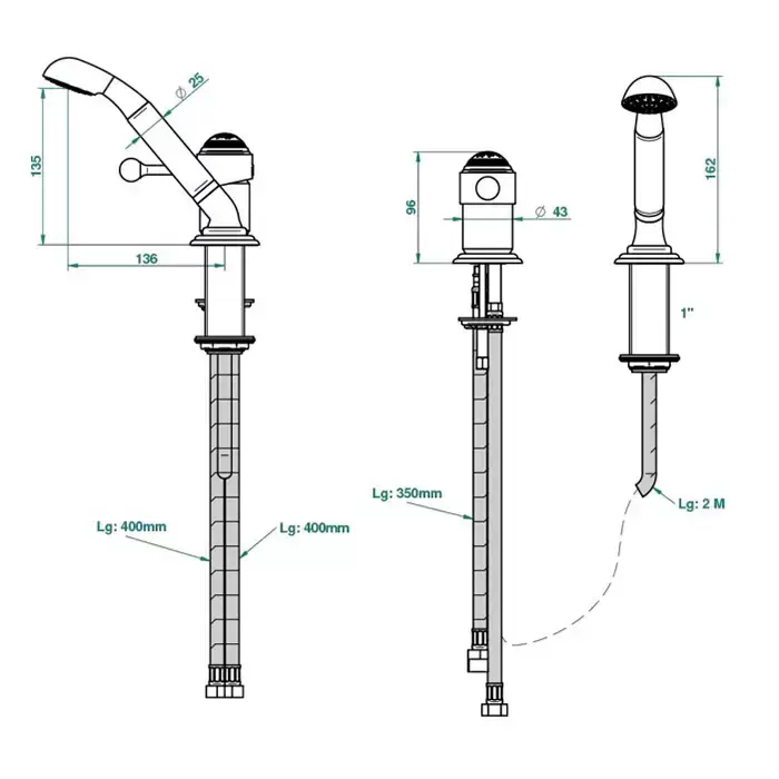 THG Marquise platinum decor Смеситель на борт ванны на 2 отв, однорычажный, без излива, с ручным душем, ручки белые, декор платина, цвет: хром