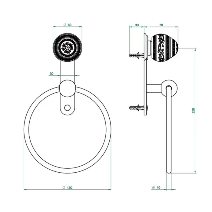 THG Marquise porcelaine blanche Полотенцедержатель - кольцо 18см., подвесной, цвет: хром/платина/белый фарфор