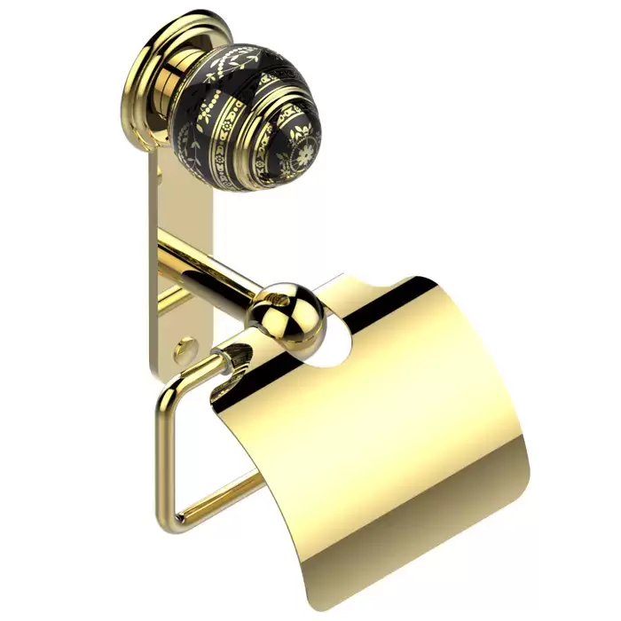 THG Marquise porcelaine noire Держатель для туалетной бумаги с крышкой, подвесной, цвет: золото/черный фарфор