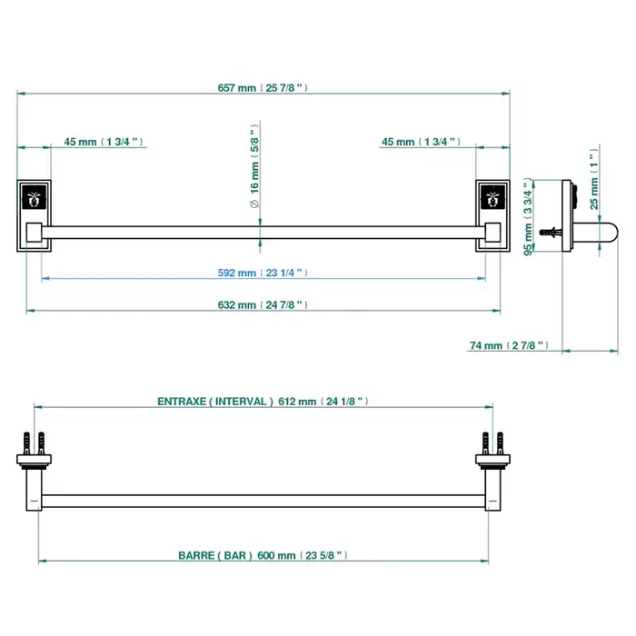 THG Masque de Femme métal lisse Полотенцедержатель 60см, подвесной, цвет: хром