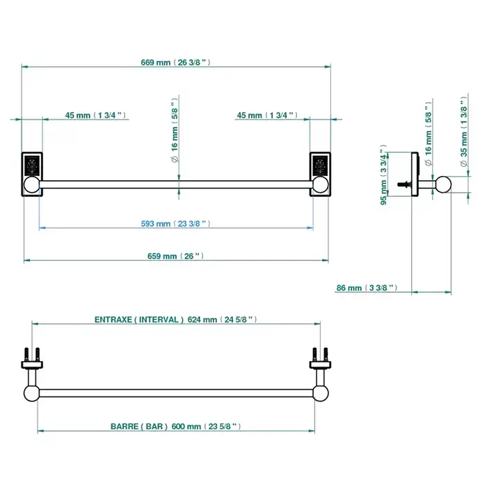 THG Métropolis à manettes cristal clair Полотенцедержатель 60см, подвесной, цвет: хром/прозрачный хрусталь