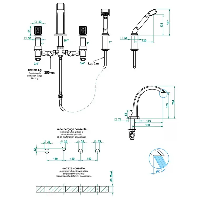 THG Metropolis cristal clair Смеситель для ванны, 4 отв., цвет: хром/прозрачный хрусталь