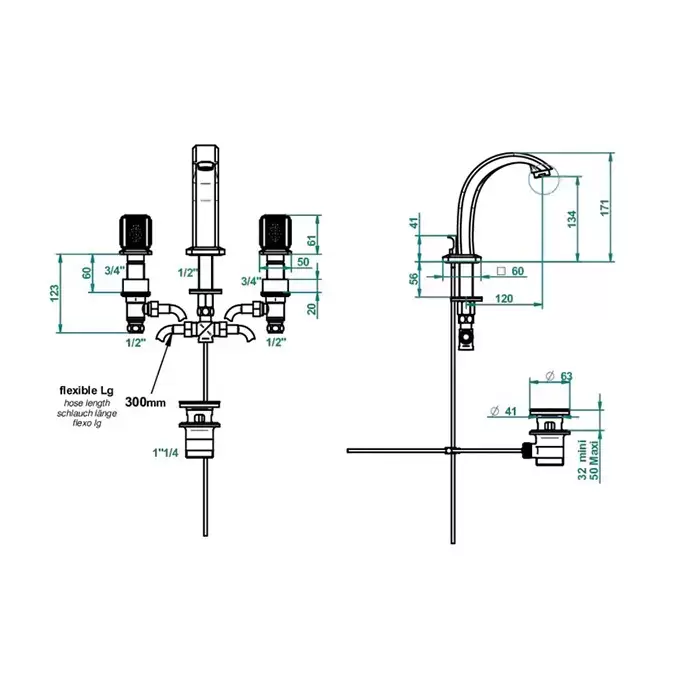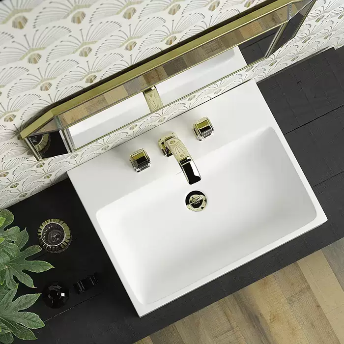 THG Metropolis Cristal Noir Смеситель для раковины на 3 отверстия, с донным клапаном, цвет: Soft Gold