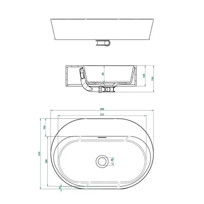 THG Monceau Раковина накладная 60х41х12cм., без отв., с переливом, цвет: белый матовый