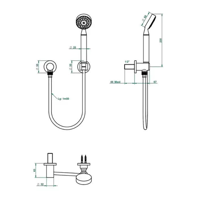 THG Mossi cristal clair Душевой комплект с ручным душем, шланг 1500 мм., держатель и подвод воды, цвет: хром