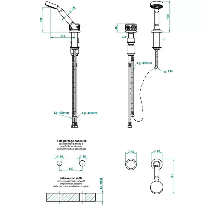 THG Paradise Ручной душ на борт ванны, 2 отв., цвет: хром/хрусталь