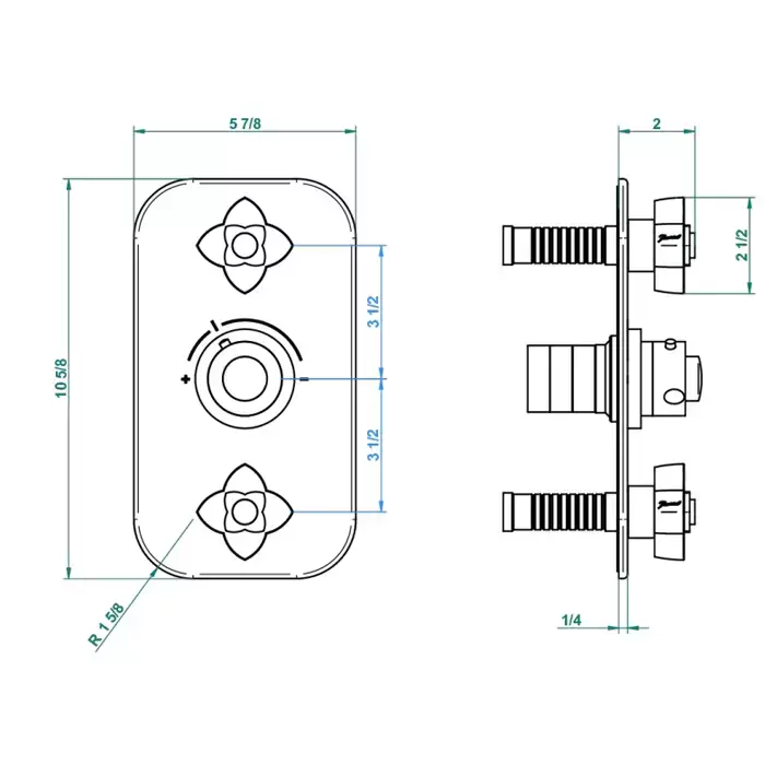 THG Pétale de cristal bleu Смеситель для душа, термостатический, 2 потока, цвет: золото/синий хрусталь