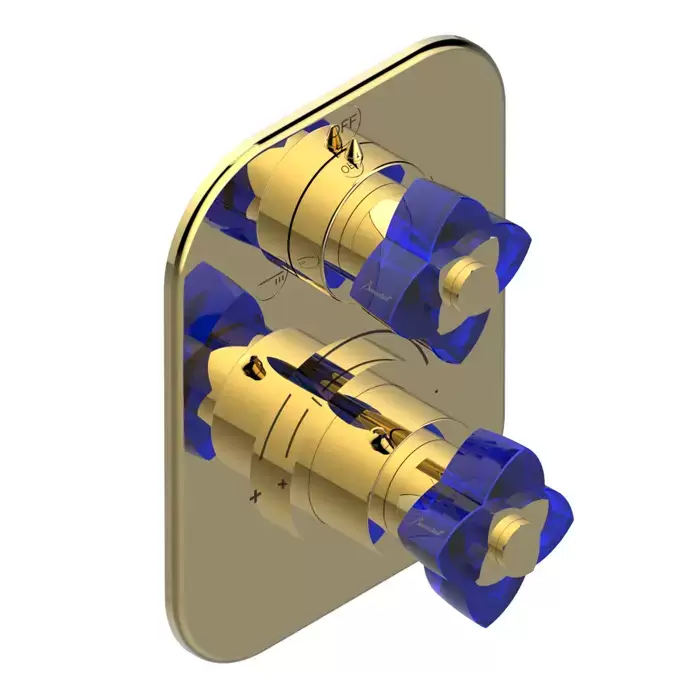 THG Pétale de cristal bleu Смеситель для душа, термостатический, с переключателем на 2 потока, цвет: золото/синий хрусталь