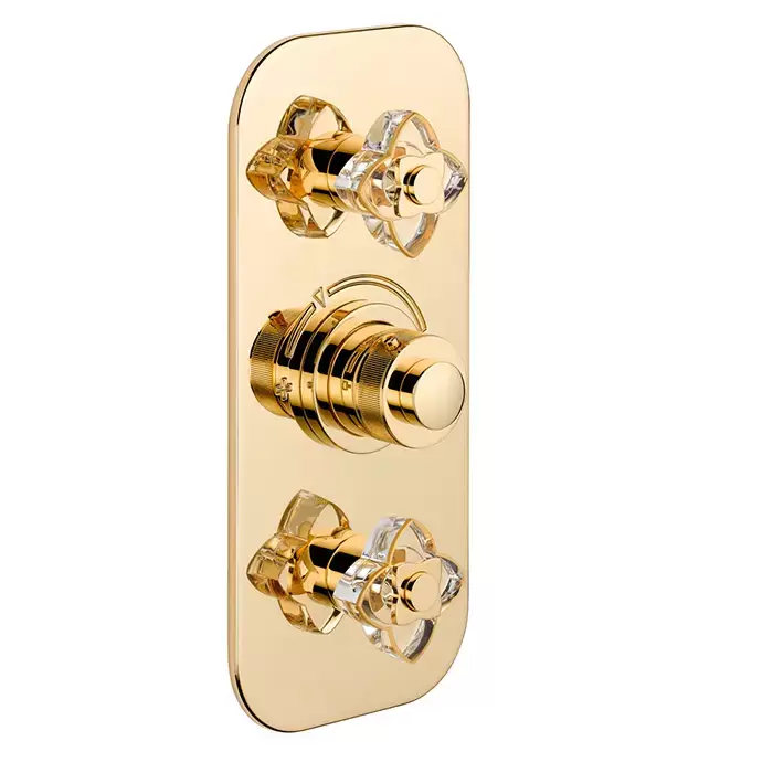 THG Pétale de Cristal clair liseré doré Смеситель для душа, термостатический, 2 потока, цвет: золото/прозрачный хрусталь с золотым декором