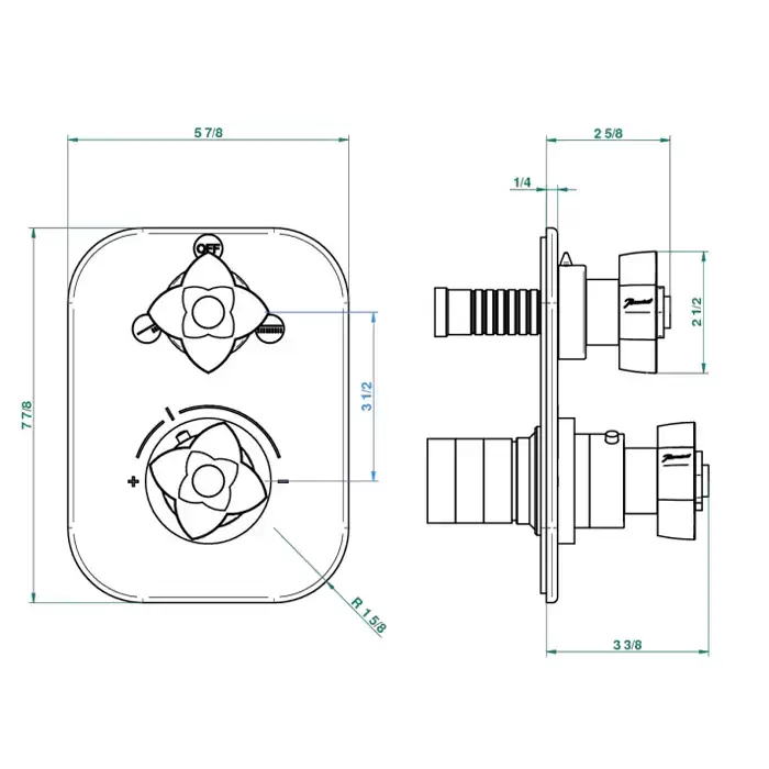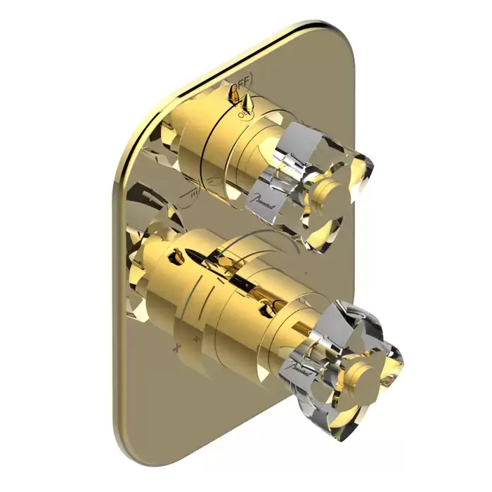 THG Pétale de cristal clair Смеситель для душа, термостатический, с переключателем на 2 потока, цвет: золото/прозрачный хрусталь