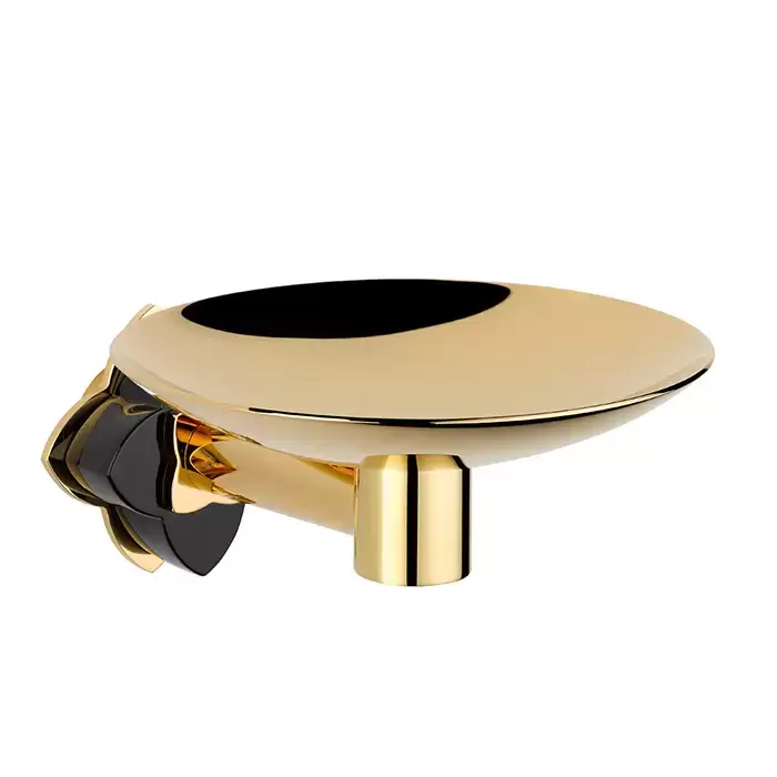 THG Petale de Cristal noir Мыльница металлическая ø 15см., подвесная, цвет: золото/черный хрусталь
